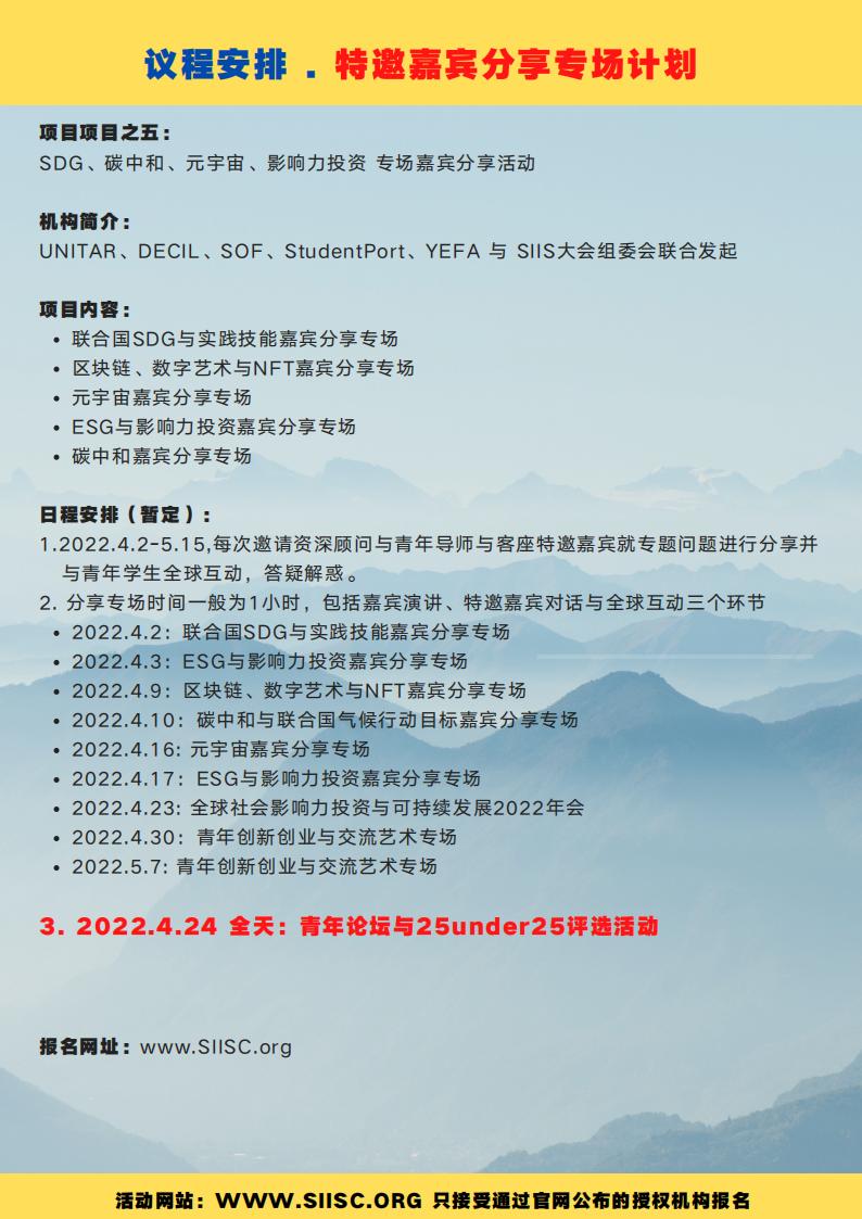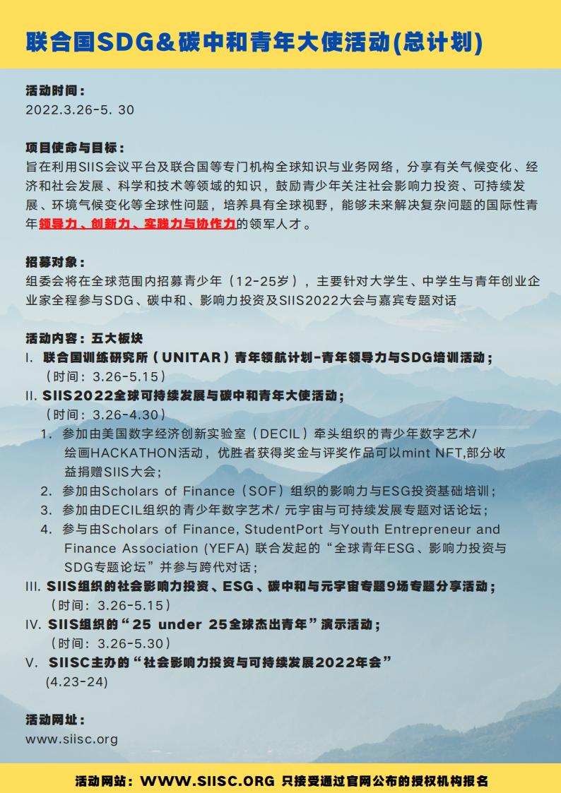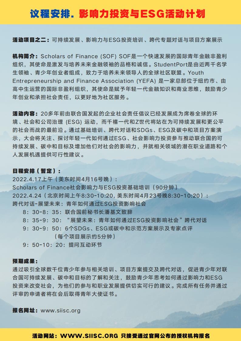 报名参加”联合国青少年领航计划“的学生还可直接参与2022年社会影响力投资与可持续发展年会!