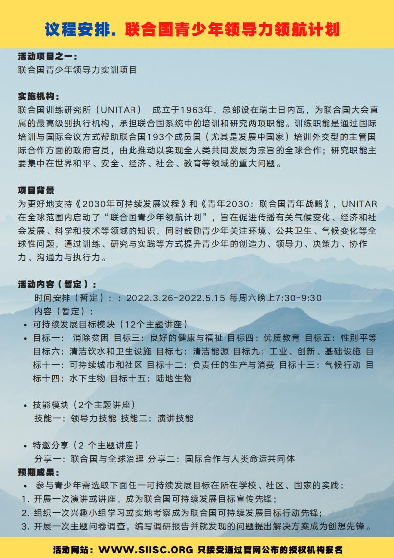 联合国青少年领导力训练营中国学生课表