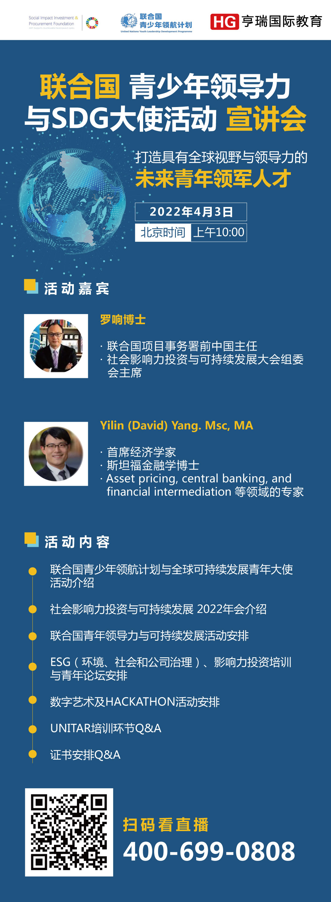 首页 > 亨瑞服务 > 讲座活动 > 【4.3亨瑞直播】联合国青少年领导力与SDG大使活动宣讲会