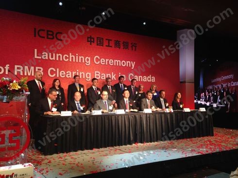 当地时间3月23日晚间,北美首个离岸人民币清算中心在加拿大金融重镇多伦多正式启动。启动仪式在大多伦多会议中心举行,出席仪式的主要嘉宾包括加拿大财政部长Joe Oliver、联邦参议员胡子修,中国工商银行副行长谷澍、中国驻加拿大大使罗照辉、中国驻多伦多总领事薛冰、加拿大安大略省财政厅长以及不列颠哥伦比亚省财政厅长等。作为多年从事移民留学行业并为中加两国的经济和人才交流做出贡献的亨瑞集团受邀并派员参加了活动,亨瑞资本应邀参加了签字仪式。