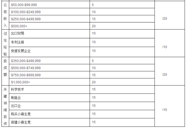 附:萨省企业家项目意愿评分表 (满分160分)