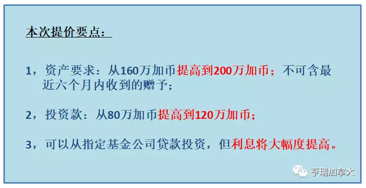 亨瑞集团加拿大移民专家曾经一再提醒涨价趋势,指明加拿大移民政策对申请人要求的趋势是:
