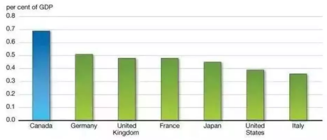 不管哪个国家,优秀的科学家也都是从良好的教育体系中培养出来的。根据此前统计的世界诺奖的主分布情况来看,诺奖得主多的国家(美国、加拿大、英国、法国、瑞典)等其教育投入均超过了本国GDP的4%。其中加拿大比例相当高,教育投入占国民GDP 7%。
