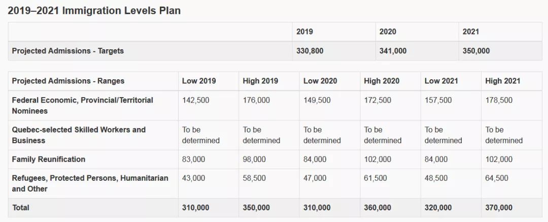 本次公布的2019年及2020年的配额计划,均比17年公布的计划有所增加,可以感受到加拿大联邦政府坚持扩大吸纳移民的积极态度。