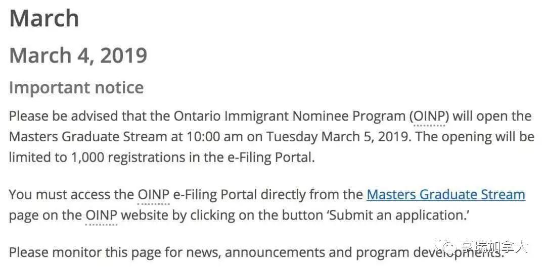 今天早上安大略省移民厅,现名“安省经济发展就业和贸易厅”( Ministry of Economic Development, Job Creation and Trade )发布了2019年安省省提名硕士学位移民类别(Ontario Immigrant Nominee Program Masters Graduate Stream )的通知。