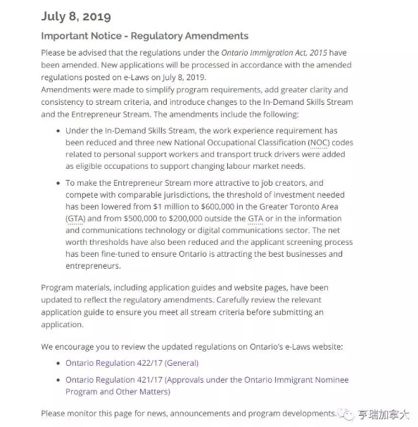 加拿大本地时间2019年7月8日,安省移民厅宣布实施新的修订法案(OntarioImmigration Act, 2015-Amended),新实施的法案主要对以下两个类别的移民申请做出了修订: