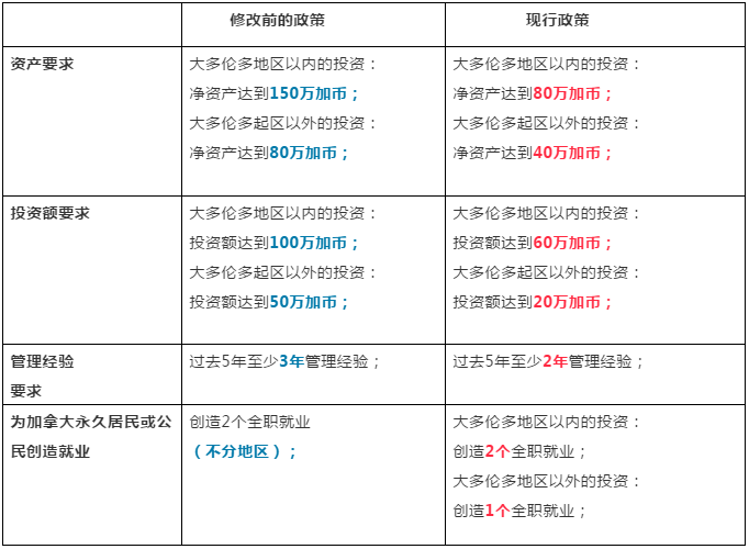 安省企业家项目新旧政策申请条件对比: