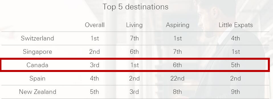 排名第三的加拿大表现相当稳定,去年位居第四。值得注意的是,加拿大在生活质量方面好评度第一,受访者称加拿大是一个友好的国家,经常会让移民有宾至如归的感觉。