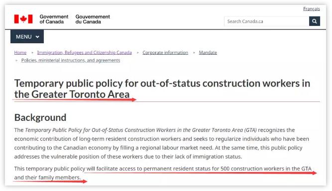 这项移民申请仅限于居住在多伦多、Durham区、Halton区、Peel区和York区的建筑工人。申请于2020年1月2日正式开放,截至2022年1月2日。
