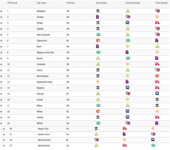 在全国最佳城市的排行榜中,前十几乎全部被安省给包揽,占了其中的9位。