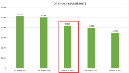 2019年上半年每次的筛选人数较2018年来说比较稳定