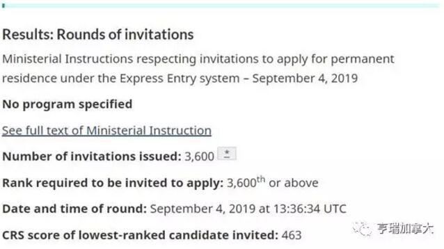 加拿大时间9月4日,加拿大联邦技术移民下的快速通道(EE)新一轮抽签结果公布,此次最低受邀分数为463分,受邀人数3600人,比起上一次增长了6分!
