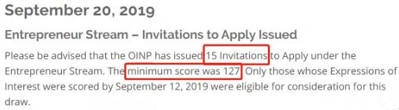 如果申请人对安省情有独钟,雇主担保项目虽然今年不再接受申请,安省的企业家移民项目大门敞开着呢,9月份的中签情况如下: