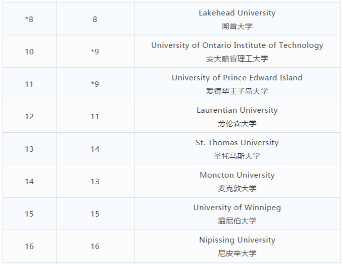麦考林排名一直有着自己鲜明的特点。不熟悉这一排名的人可能会认为,为什么加拿大院校只有这几十所?事实情况是,虽然加拿大总体院校数量不多,但麦考林排名不会将全日制注册人数在1000人以下的学校囊括在内,故而有排名的大学数量偏少。