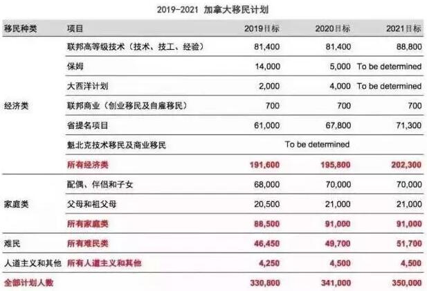 这意味着,加拿大将在2020年增加341,000名新移民,在2021年为35万,到2022年达到36万人。
