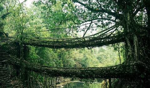 树根桥,印度