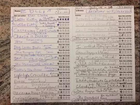 (去年暑假,婆婆带我四岁的女儿一周,她详细记录了每天我女儿的读书情况)