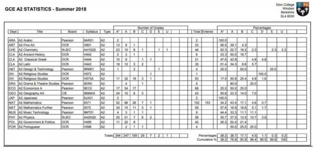 英国名校伊顿公学的2018年A-level考试成绩被披露,A+学生占比高达38%,全A学生高达76%。而这已经达到了牛剑的成绩要求。