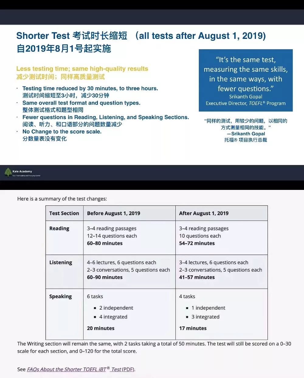1.新托福从8月1日起将缩短至3小时,减少30分钟!