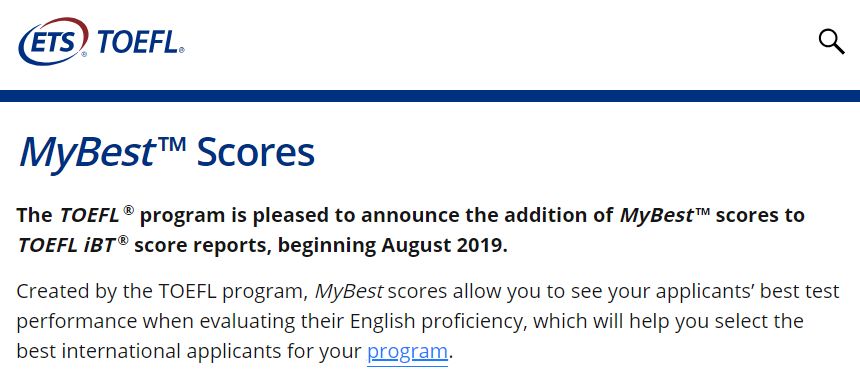 此次托福改革涉及另一项重大变化就是托福拼分。8月1日起,ETS开始发送单次最佳考试成绩和拼分后的最佳成绩。