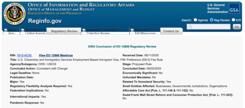 8月11日,EB-5收费新规草案提交至白宫预算管理办公室(OMB)审批。