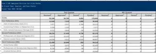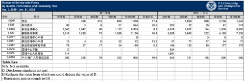当地时间10月8日,美国移民局更新了2025财年第三季度职业移民递件和审批的最新数据。
