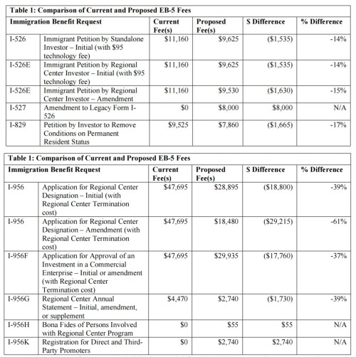 投资人相关:I-526、I-526E:费用从11,160美元降至9,625美元,降幅14%;I-829:从9,525美元降至7,860美元,降幅17%。