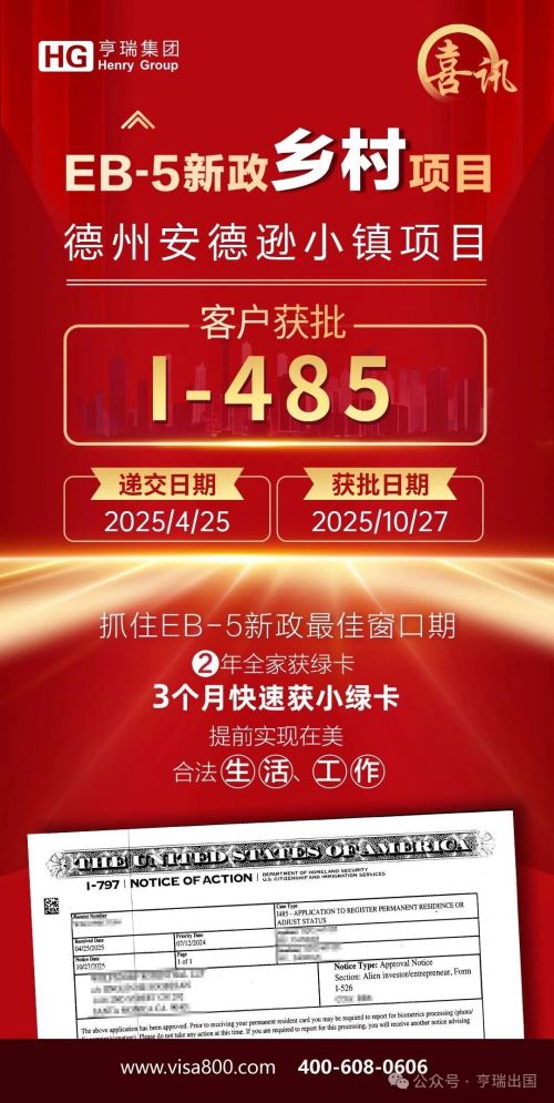 2位客户成功拿到美国绿卡、1位客户I-485获批,EB-5基建项目也同步传来好消息,I-956F获批~