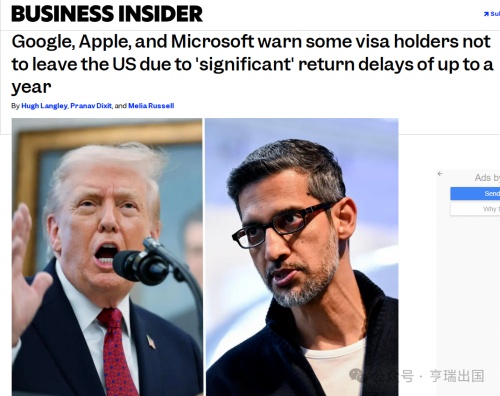 据《商业内幕》、印度《经济时报》报道,谷歌、苹果、微软等科技公司已向持有H-1B 签证的外籍员工及其家属发出警告,建议他们避免国际旅行,因为可能面临滞留美国境外的风险。