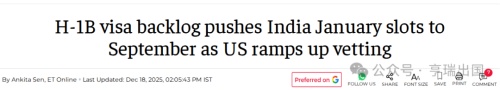 虽然印度因申请量大而首当其冲,但签证延误是全球性现象,包括中国 H-1B 持有人在内均可能受到波及。建议: