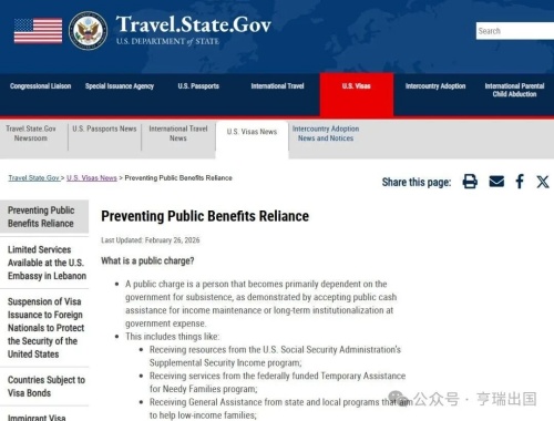 当地时间2月26日,美国国务院发布了有关“公共负担”规则以及领事官员在确定签证申请人是否可能成为“公共负担”的相关问题解释。