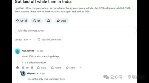 该员工在Reddit上的发帖已引起多数人共鸣:“H-1B签证实际上已经失效”。