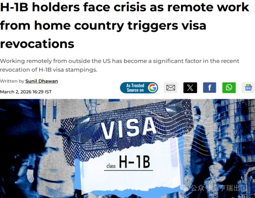 根据《金融快报》当地时间3月2日的报道,“在美国境外远程办公”已成为近期 H-1B 签证被撤销的主要原因之一。
