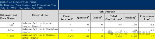 根据美国移民局(USCIS)发布的2025财年第四季度数据,新法下的I-526E审批速度犹如持续按下了加速键。