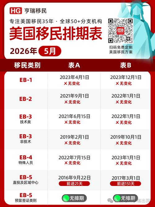 美国国务院公布了2026年5月的绿卡排期!