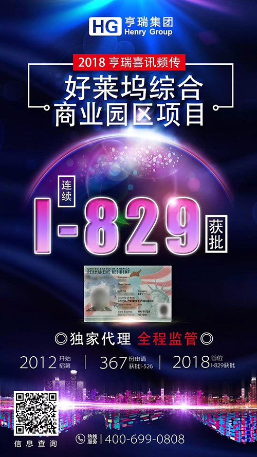由亨瑞集团独家代理的EB-5项目——好莱坞综合商业园区项目,自上个月第一位客户获批I-829后,今日又传喜讯:该项目又有3位投资人喜获I-829!