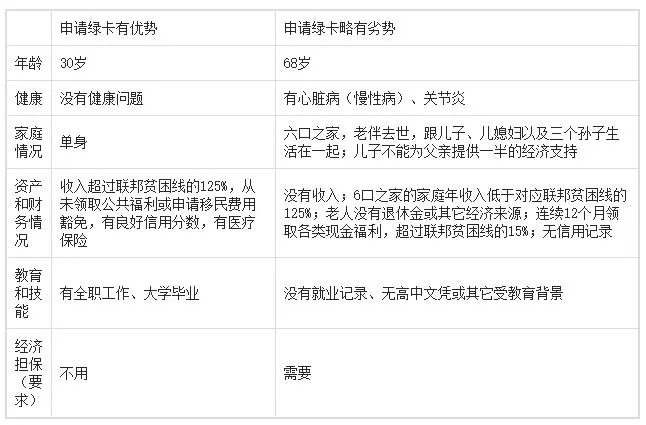 以下是根据新规整理出两个申请绿卡者拥有优劣势的实例。