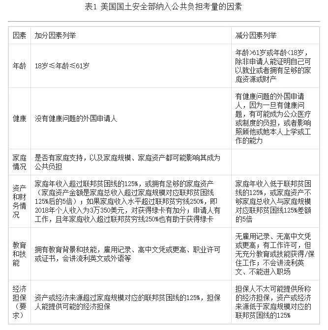 新规还纳入了公共负担必须考虑的强制性因素,分别是:年龄、健康状况、家庭状况、资产和财务状况、教育以及技能、经济担保与否。同时,还撤回了之前的美国司法部移民规划局(INS)在1999年5月26日公布的公共负担拟订条例。