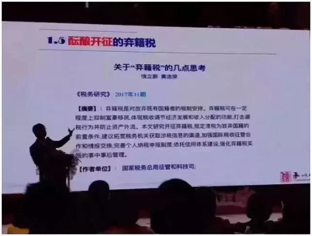 从图上可以看出,该PPT的作者为国家税务总局征管和科技司的税务官员,称“弃籍税”可以在一定程度上打击漏税行为、防止资产外流。因此建议研究如何在国内开征。