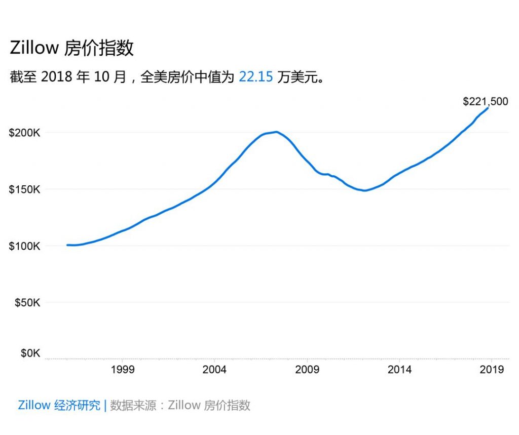 Zillow房价指数也显示,房价仍在继续上涨。截至今年 10 月份,全美房价中值同比增长 7.7%,与 9 月份持平。2018 年全年的同比增长率预计在 7.5% 至 8% 之间。