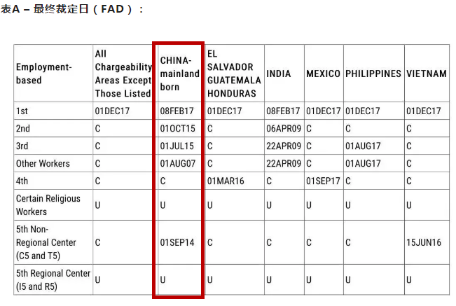 根据职业移民排期表A,对于中国大陆出生的申请人来说: