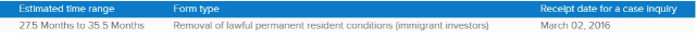 注:上述表中的Estimated time range(审理所需的预计时间范围)是从收到递交的日期开始,移民局办公室处理案子所需的时间。移民局一般按照收件的顺序来审理案件,并定期更新案件查询日期。这个时间范围,是移民局根据已完成案例的历史数据数据来计算的处理时间。移民局并不能预测当前递件的审批时间。