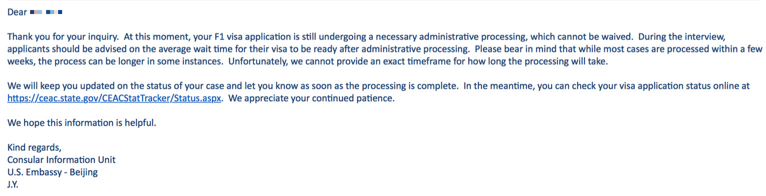 联系了美国大使馆,却得到千篇一律的回复:耐心等待结果。