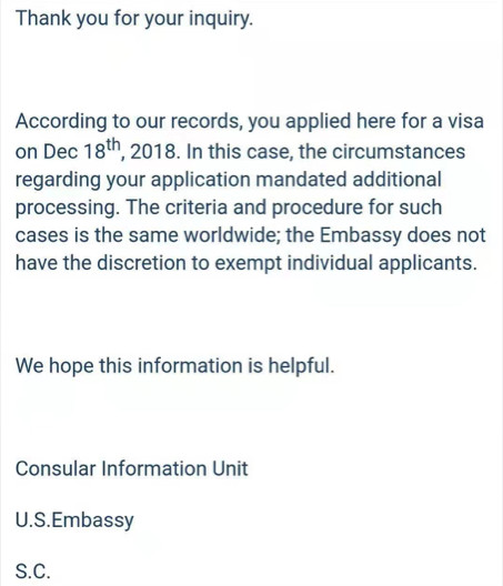 不仅如此,他们没有任何渠道可以得知具体进展,几乎所有的途径都只会说:“你的case在额外审查,但是没有具体的完成期限”