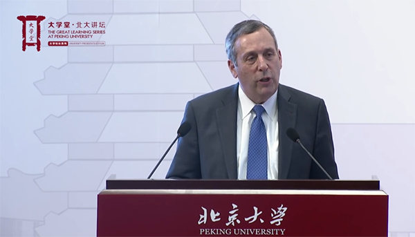 同日,巴科校长还前往北大做了诚挚的演讲《真理的追求与大学的使命》。