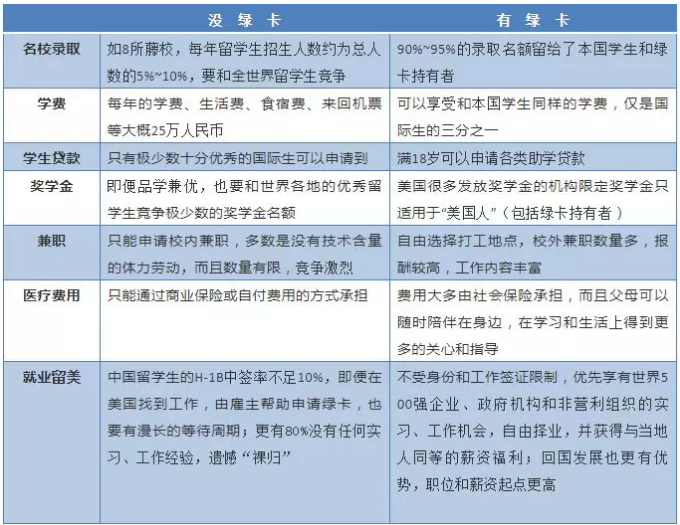 先移民后留学!名校申请竞争激烈、报考热门专业受到限制、最好的实习和工作机会不向国际生敞开、毕业后找工作困难重重、往返签证带来的种种限制和麻烦……这一切,在获得美国绿卡后,都会迎刃而解!