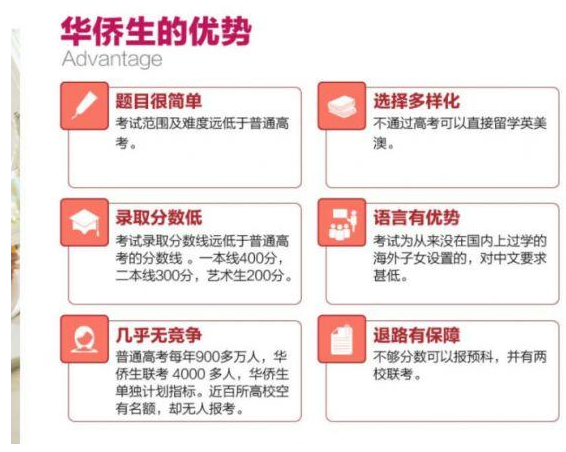 现在华侨生联考在国内已经不算陌生了,“为孩子拿个海外身份,成为华侨生”是很多家长对于子女教育的一种长远性规划。