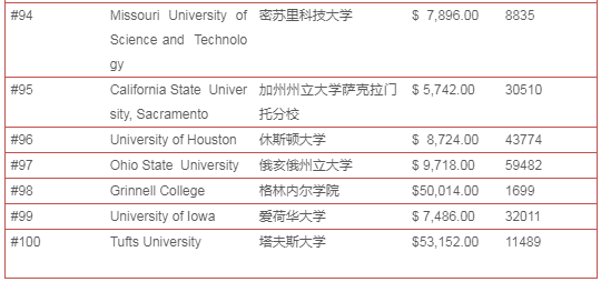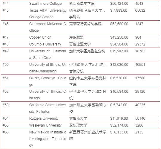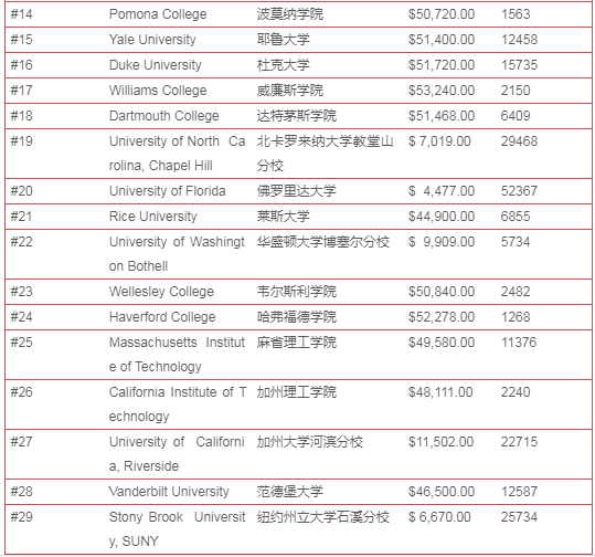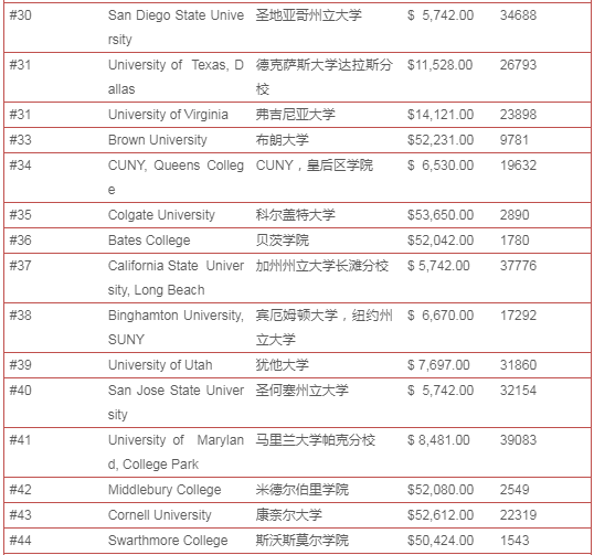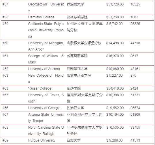 这份名单突出高性价比的学校。总的来说,福布斯关注学生的毕业率、毕业后的薪资水平、学生贷款。也就是花的少,可以毕业,毕业后挣钱多。当然也就是性价比高!