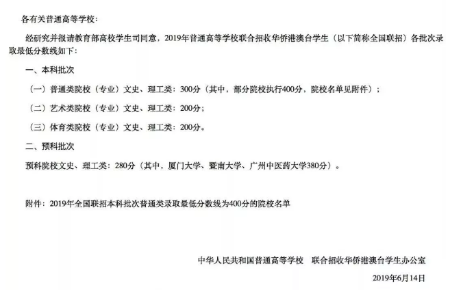 2019年1月,教育部门发布了《2019年中华人民共和国普通高等学校联合招收华侨港澳台学生简章》,对于华侨生的标准,有了更严格的规定。