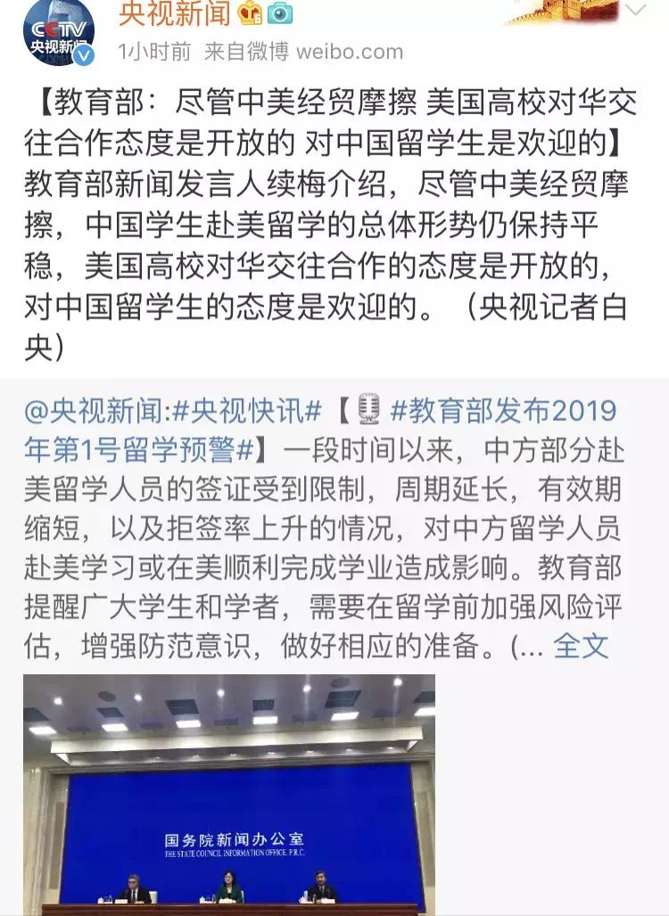 6月3日和6月4日,我国政府接连发布了2019年第1号留学预警和中国游客赴美旅游安全预警。